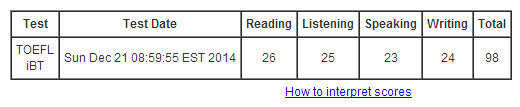 托福考试达到98分