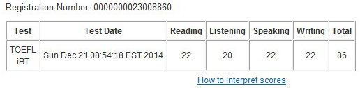 首次托福考试达到86分