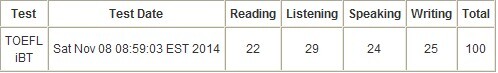 第二次托福考试:100分,听力29分。