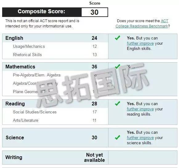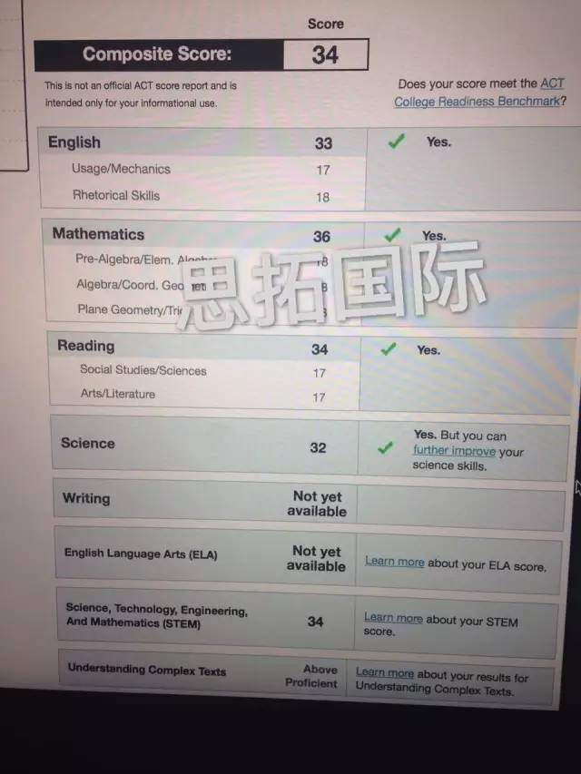 在六月的托福和ACT考试中,思拓学员分别取得了托福110分和ACT34分的高分,还有其他很多学员也取得了不错的成绩。