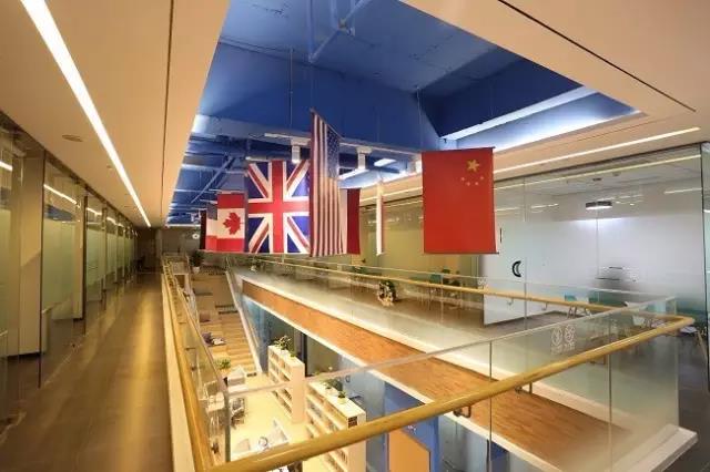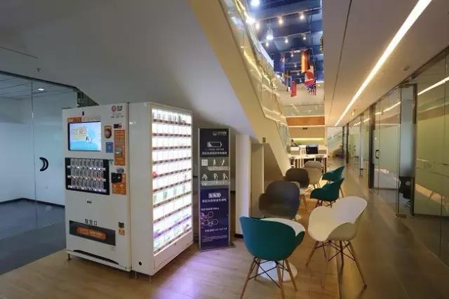 核心区域:由39间教室围合起来形成的挑高的学员公共休息区~配备了吧台、电脑上机处、阅览区、自动饮料贩卖机、手机充电桩等