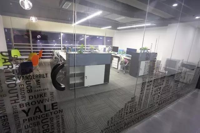 各种办公区域:细心的童鞋可以发现 办公区的玻璃贴膜是由美国名校的英文拼成的城市天际线哦~